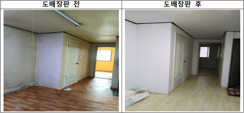 주거환경 개선사항으로는 방충망 설치, 방역·방제, 가스타이머 설치, 점·소등 전등 및 리모컨 설치, 도배장판 교체, 노후보일러 교체 등이다.