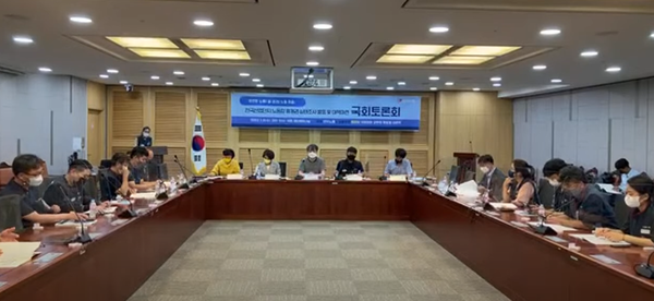 이달 6일 국회의원회관 제2세미나실에서는 민주노총과 강은미 정의당 의원, 정부측 인사 등이 참석한 가운데 전국 산단 노동자 휴게 시설 관련 토론회가 열렸다.