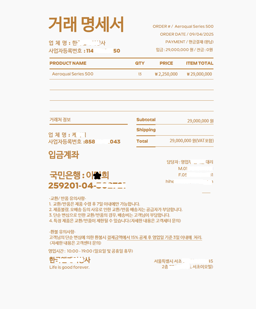 환경기기 구매 선입금 요청 사례 발생...관계부서 확인해주시길 바래