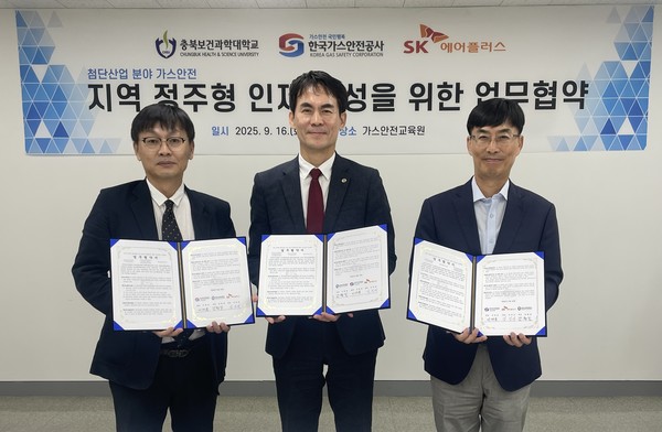 한국가스안전공사 가스안전교육원(원장 이재용)은 충북보건과학대학교 차세대디스플레이 혁신융합대학 사업단, SK에어플러스와 '첨단사업 정주형 전문 인재양성과 가스안전 교육협력 강화를 위한 업무협약을 체결했다'고 16일 밝혔다.
