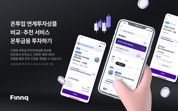 지난 7월 금융위원회 혁신금융서비스로 신규 지정된 온투업 연계투자상품 비교·추천 서비스는 여러 온라인투자연계금융사(온투금융사)의 다양한 투자상품 정보를 핀크 앱 하나로 한눈에 확인하고, 투자성향에 맞는 맞춤형 상품까지 간편하게 찾을 수 있는 서비스다.