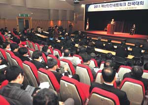 올해 재난현장에서 펼쳐진 활동성과를 평가하고 경험과 비전을 공유하는 ‘2011 재난안전네트워크 전국대회’가 개최됐다.소방방재청(청장 이기환)은 지난달 24일 충남 천안 상록리조트에서 전국 재난안전 담당 공무원 및 재난안전네트워크회원 280여명이 모인 가운데 ‘2011 재난안전네트워크 전국대회’를 개최했다.재난안전네트워크 전국대회는 지난 1년 동안 각종 재난현장에서 활동한 성과를 평가하고 현장 활동경험과 비전공유를 통해 앞으로 재난관리의 선도적 역할을 다짐하기 위해 마련됐다.이날 대회에서는 자원봉사활동을 수행한 5개 자원봉사단체가 수범사례를 발표했고 최우수 재난자원봉사단체 선정을 위해 토론도 병행했다.또 2012년 소방방재청에서 추진하는 물놀이 인명피해 줄이기, 재난징후정보 수집관리, 재난대응훈련, 안전점검의 날 등 주요 정책방향 설명을 통해 지방자치단체 공무원과 관련정보를 공유했다.소방방재청에 따르면 재난안전네트워크 회원단체는 올 여름철 물놀이 안전관리현장 640개소에 5만4000여명의 관리요원을 배치해 물놀이 인명피해 줄이기 목표 달성에 기여했으며 특히 장마, 태풍 등 여름철 풍수해로 인한 피해복구활동에 많은 회원들이 참여했다고 밝혔다.한편 소방방재청은 이번 대회를 통해 회원단체간 네트워킹을 보다 공고히해 재난현장 지킴이로서 민간단체의 재난자원봉사활동이 보다 활성화되는 계기가 되기를 기대한다고 밝혔다.